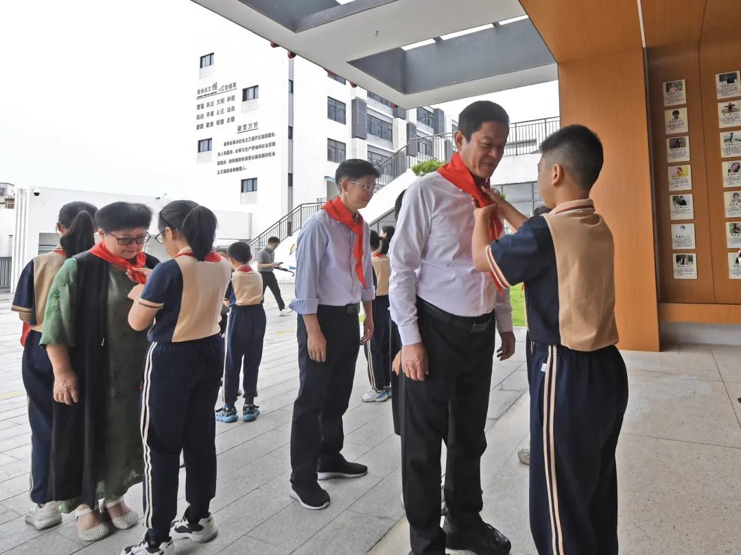来到福建师范大学泉港实验小学,杨昌文一行戴上少先队员献上的红领巾,走访参观校园环境,了解校园文化、师资力量、特色课堂等,观看孩子们排演的歌舞剧表演《寻找声音的耳朵》,倾听孩子们的心声,勉励大家珍惜光阴,勤学善思、锤炼品格、自立自强,努力成为有理想、有本领、有担当、有情怀的新时代好少年。